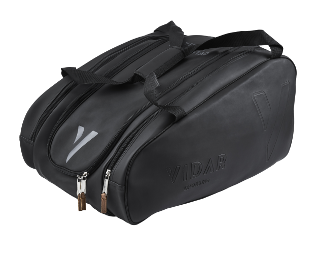 La borsa è interamente in pelle prodotta appositamente per il Padel, con materiali di altissima qualità. Elegante e discreto logo Vidar.