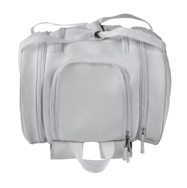 Tre scomparti principali più grandi, di cui due laterali per la racchetta e le attrezzature periferiche come asciugamani, cambio ecc., scomparto per le scarpe separato.